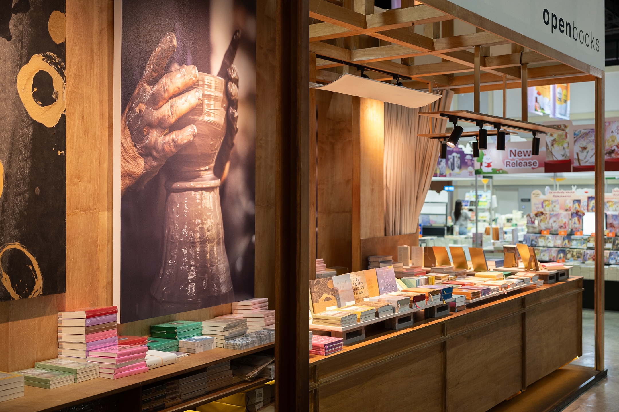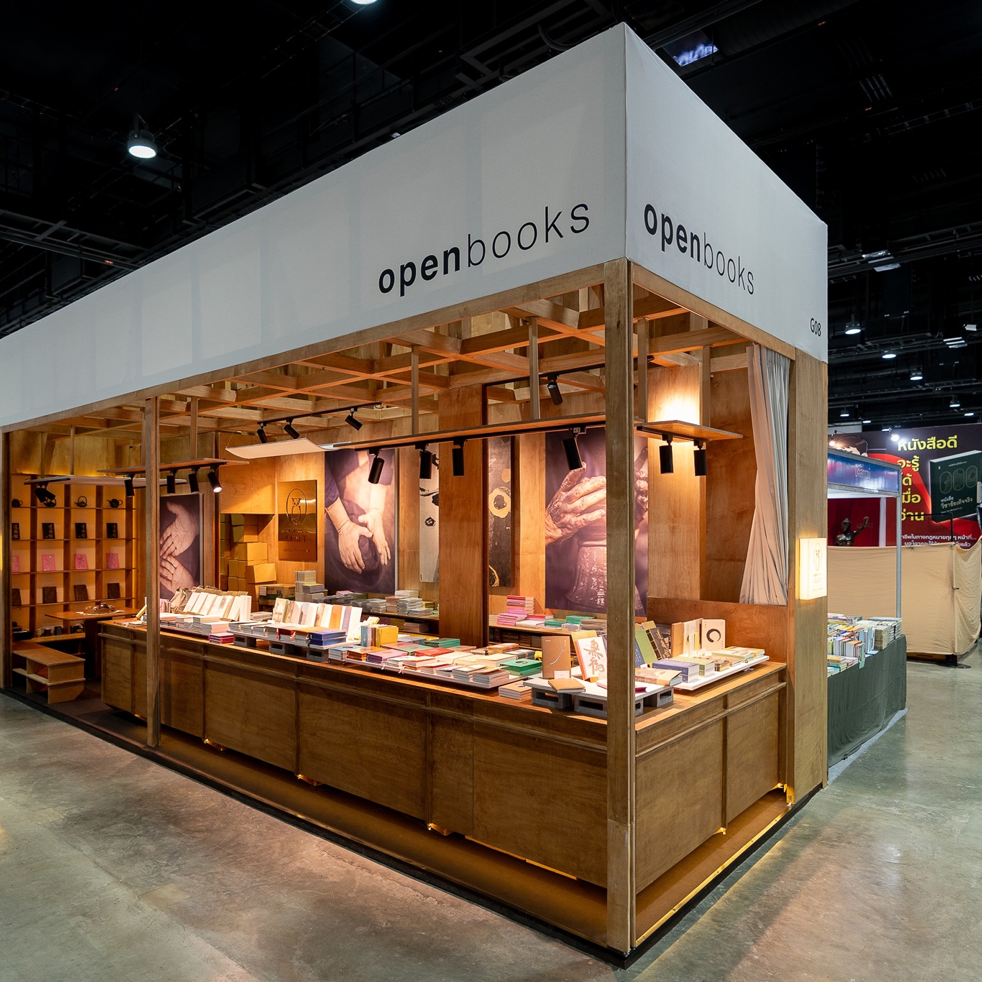 Craftsmanship Co. ร่วมกับสันติ ลอรัชวี (SANTIvitheeOKbab) ออกแบบและจัดทำบูธภายใต้ธีม The Potter's House โดยจำลองบรรยากาศบ้านไม้ที่ให้ความรู้สึกอบอุ่นและเป็นกันเอง วัสดุหลักเป็นไม้ย้อมสีที่ตั้งใจทำให้ดูมีอายุเพื่อความเป็นธรรมชาติ โครงสร้างหลังคาและคานอ้างอิงจากสถาปัตยกรรมไม้ดั้งเดิม ทั้งหมดถูกออกแบบให้สอดคล้องกับเนื้อหาของหนังสือและการใช้งานจริงในฐานะ retail space